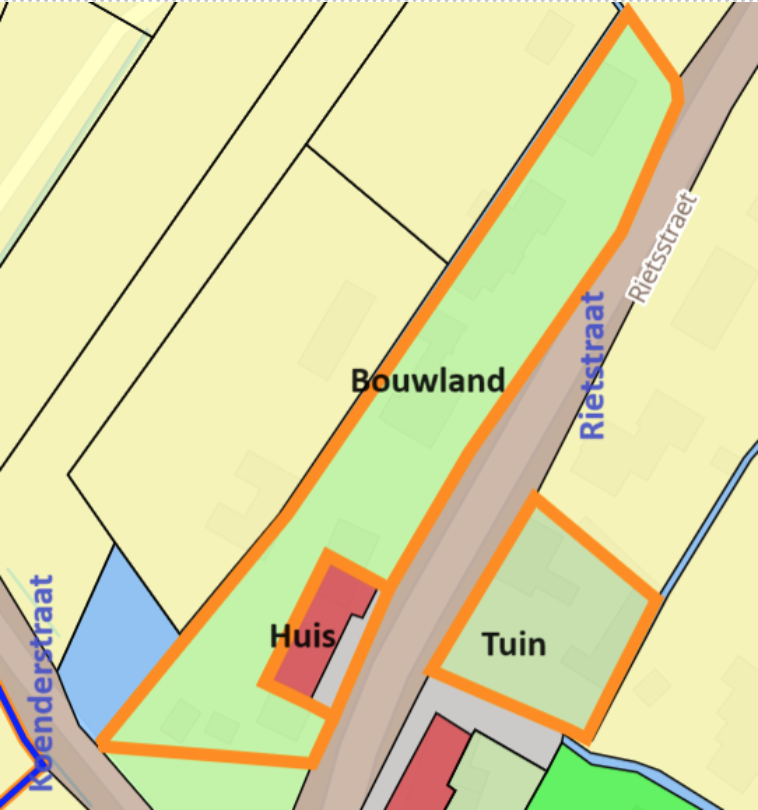 De percelen zijn inmiddels vernummerd. Huis en bouwland zijn thans WEEO1-Z-703 met een huis met het adres Rietstraat 19.