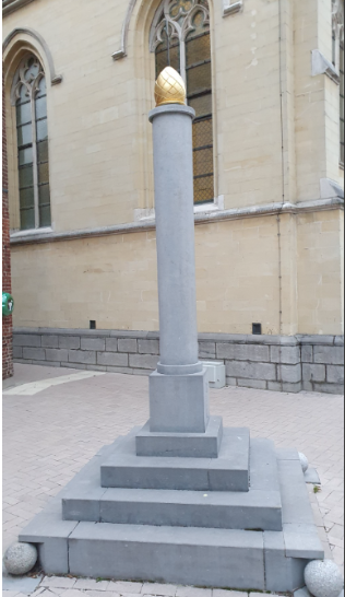 - De perroen, nabij de kerk en het oude stadhuis.
