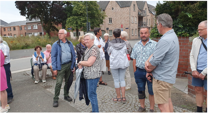 Jo Corstjens vertelde bij een verdwenen monument over het ontstaan van Bree. Bree is ontstaan op een plek waar water en vruchtbare grond aanwezig waren aan de Boneputtersbeek. Bree lag aan het kruispunt van wegen van Maastricht naar `s Hertogenbosch en van Diest naar Roermond. In de 13de eeuw kreeg Bree stadsrechten. Helaas is de brief waarin die verleend werden niet bewaard gebleven. Bree is een Mariastadje. Elke 25 jaar vindt er een ommegang plaats met de Pieta uit de kerk. Ook als er een dreiging was vond er zo`n ommegang plaats zoals in 1914 toen de Duitsers dreigden met een totale verwoesting van Bree. Die is ook uitgebleven maar de ware reden daarvan waren connecties van een oud-inwoner van Bree met de autoriteiten.