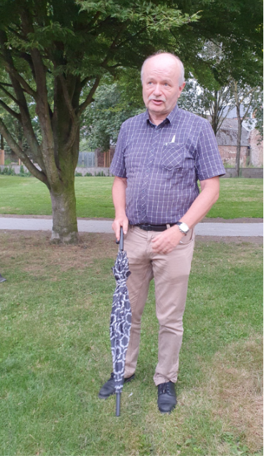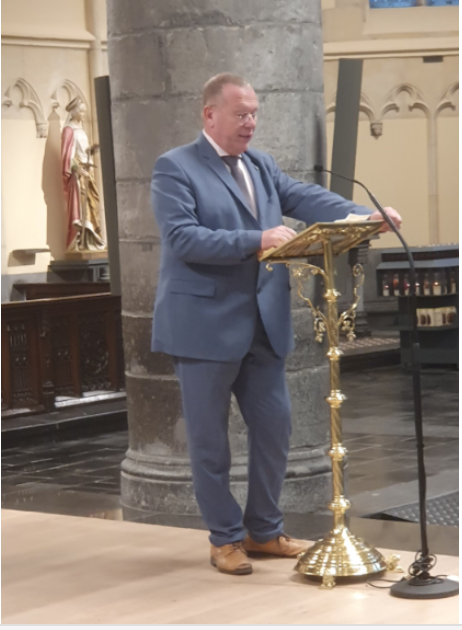 Peter sprak zijn dank uit aan het kerkbestuur, de vrijwilligers en de sprekers van vanavond en wenste de deelnemers een aangename avond toe in Bree, een stad met een perroen.