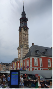 Het gezelschap werd in twee groepen verdeeld voor een stadswandeling en een bezoek aan het stadhuis en de Onze- Lieve-Vrouwekerk. Uw verslaglegger kan alleen verhalen van zijn indrukken in zijn groep met als gids Kathleen Smolders. De gids van de andere groep was Jo Fabré.
